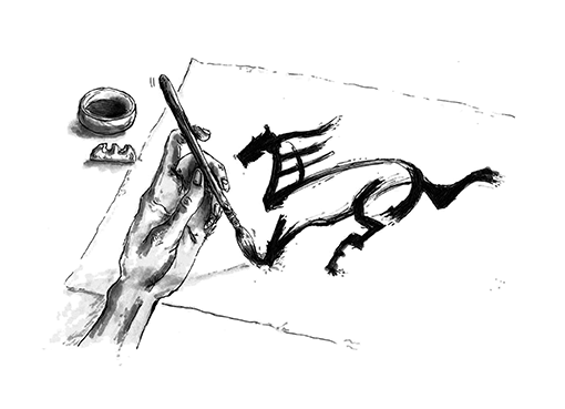 La calligraphie qui forme un cheval fougueux plein de vie, en hommage au nouvel an lunaire de février que j’aime particulièrement. L’année 2026 sera celle du cheval.