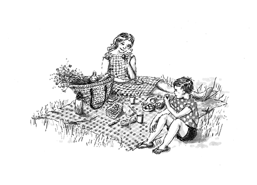 Ce mois est associé aux vacances, au repos et aussi aux récoltes. Je suis partie sur l’idée d’un pique nique qui me permettait de m’amuser à fond avec le motif vichy… Ça donne une image un peu nostalgique je trouve. Un air cosy un peu « cottage ». Et j’ai plutôt représenté l’ambiance de la chaleur que la température (car je la crains).