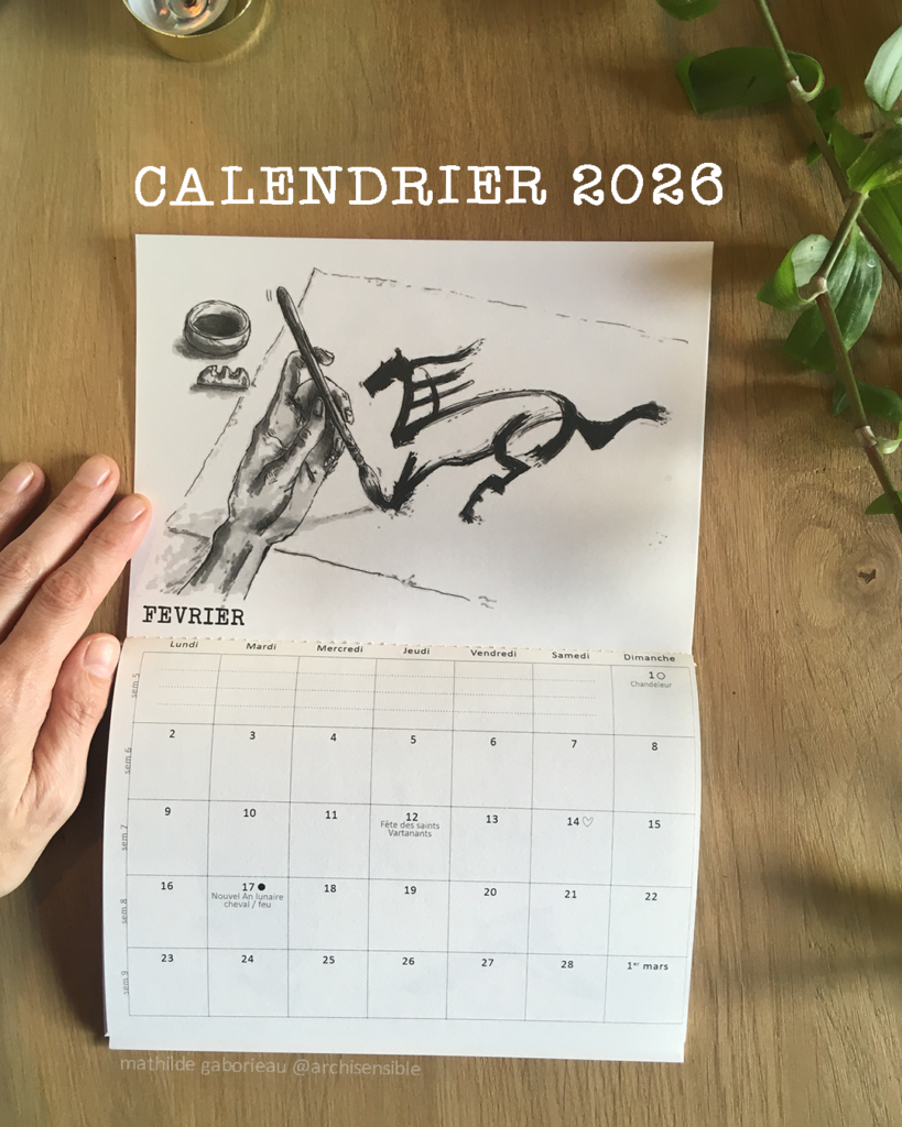 sélection de 8 dessins d’automne 2025, le calendrier 2026 avec 12 illustrations inédites et un calendrier perpétuel