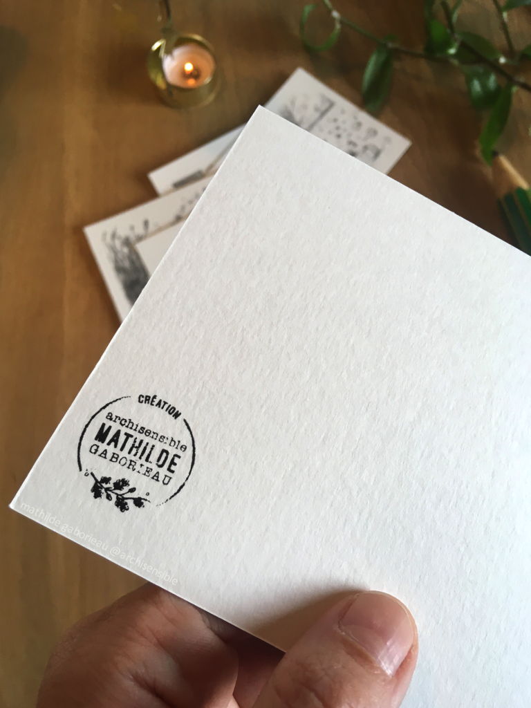 J’ai choisi après moult test un beau papier aquarelle canson épais 300 g/m² grain fin, sans acide, sans azurants optiques, antifongique.